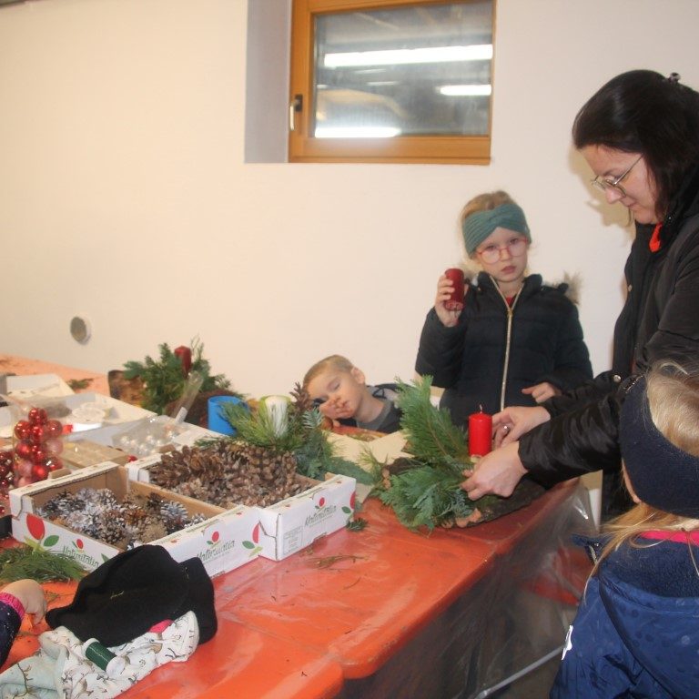Die Kinder hatten sehr schöne Gestecke und Moossterne gefertigt und freuten sich schon darauf, später dem Nikolaus ihre Weihnachtsdekorationen noch zeigen zu können, der den meisten noch einen Besuch abstattete.